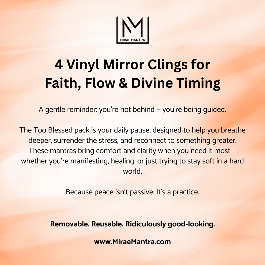 The "Too Blessed To Be Stressed" Pack is a gentle, grounding set of mantras for anyone leaning into faith, flow, and divine timing. Whether you’re manifesting, meditating, or just trying to stay present through the chaos, these vinyl clings are daily nudges to stay soft, stay grateful, and trust that the universe is working in your favor.